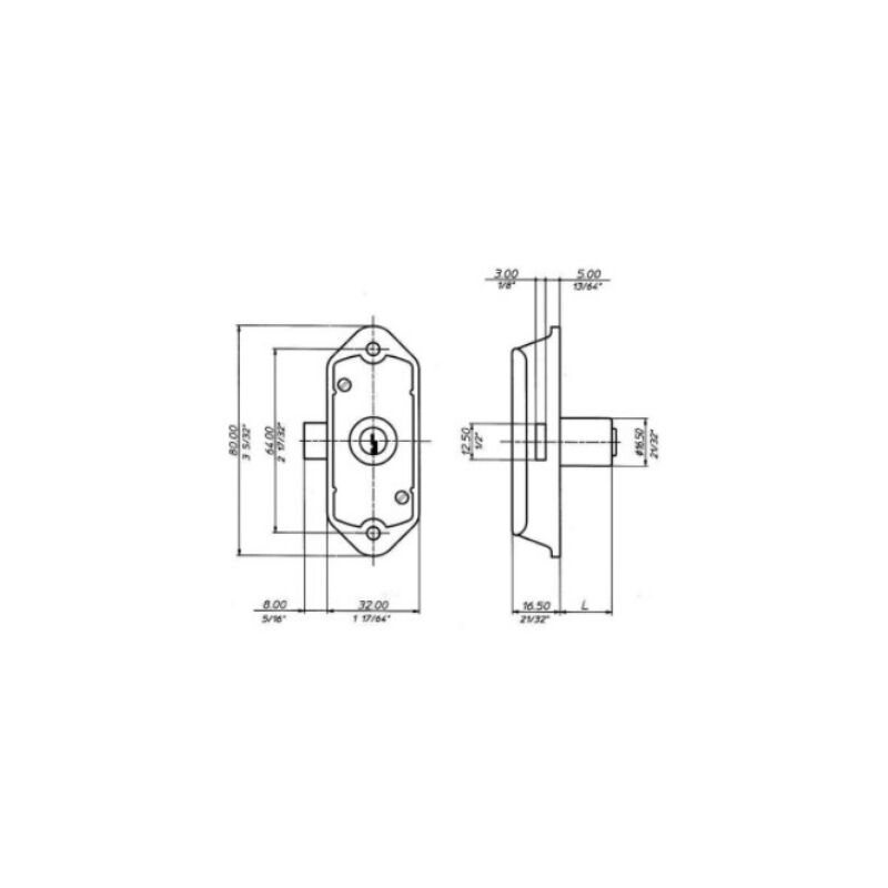 Serratura da mobile da applicare ad aste rotanti con la chiusura orizzontale a cilindro diametro mm.16 lunghezza mm.20 in finitura nichelato. Scatola in plastica marrone. Set di accessori ME855 e le aste ME837 cm.130 da ordinare a parte.