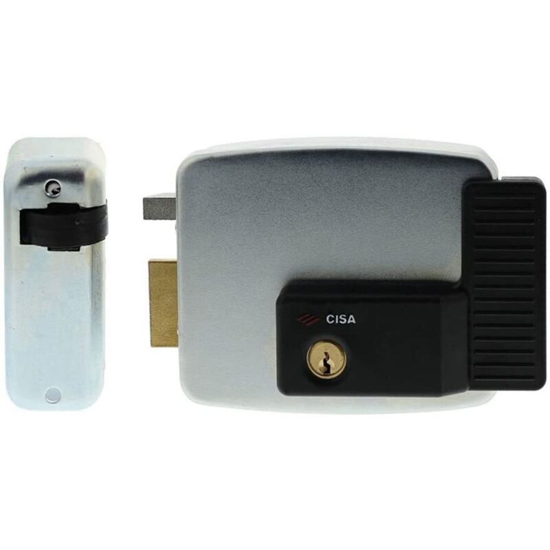 Con cilindro esterno fisso da Mm. 55 di lunghezza. Scrocco autobloccante elettrificato 12V. Completa di tettuccio protettivo e sottobocchetta. Scatola Mm. 128x106. Bocchetta Mm. 40x100. In acciaio zincato. In dotazione: 3 chiavi piatte, 1 bocchetta e viti di fissaggio.