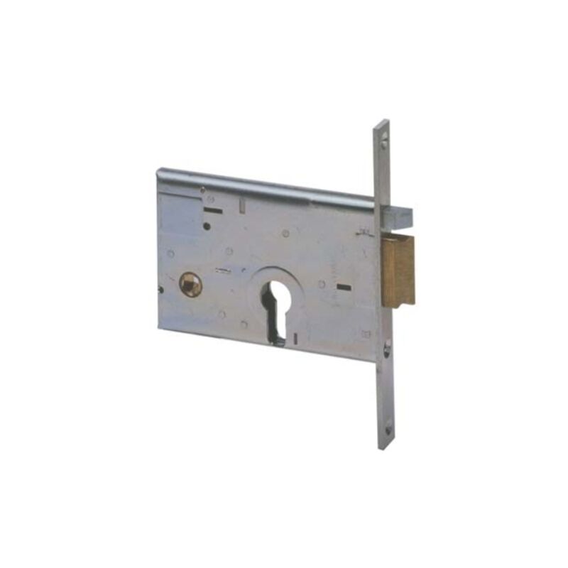 Serratura metallo infilare elettrica 14351 cisa B.q zinc f.mm 20 f.sagom+scr+f h.mm 77 e.mm 80 per cilindro sagomato. fermo a giorno. scrocco reversibile autobloccante elettrificato 12v. quadro maniglia mm. 8. frontale in acciaio zincato con bordo quadro da mm. 20x160. altezza scatola mm. 77. in dotazione: viti di fissaggio per cilindro.