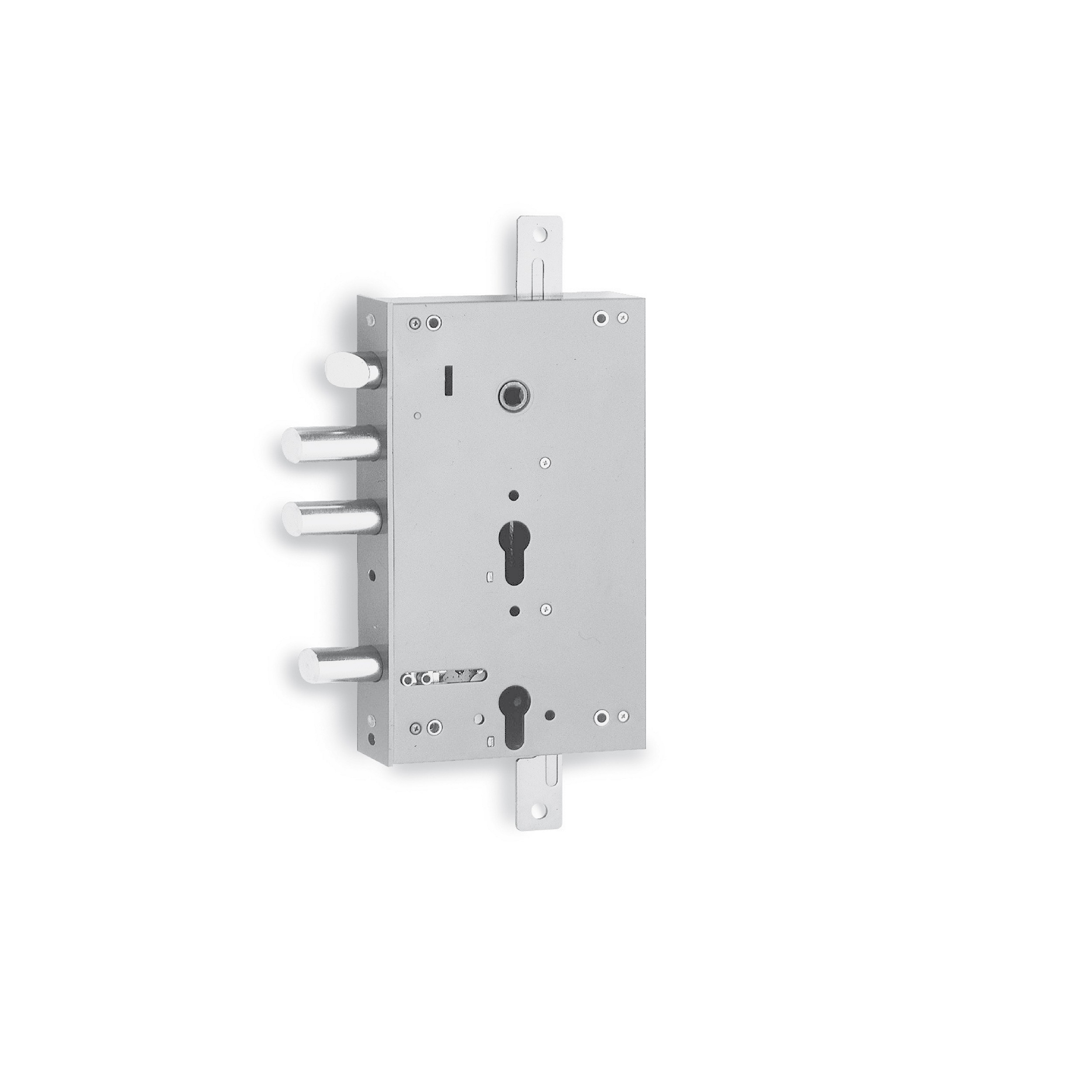 SERRATURAA CILINDROapplicare tripliceart. 868 P3 mandate e scroccoChiusura di servizio(3 mandate e scrocco)ZincataCilindri sagomatinon inclusiAste non comprese - E - 68 - Mano - Ambidestra - Sporg. - 40 - N° Cat. - 2 catenacci pi