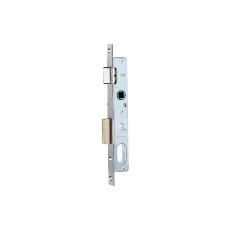 Per cilindro ovale. Scrocco reversibile. Chiusura con catenaccio a 1 mandata prolungato di Mm. 3. Quadro maniglia Mm. 8. Frontale in acciaio cromato con bordo quadro da Mm. 16x200. Altezza scatola Mm. 162. In dotazione cilindro con 3 chiavi.