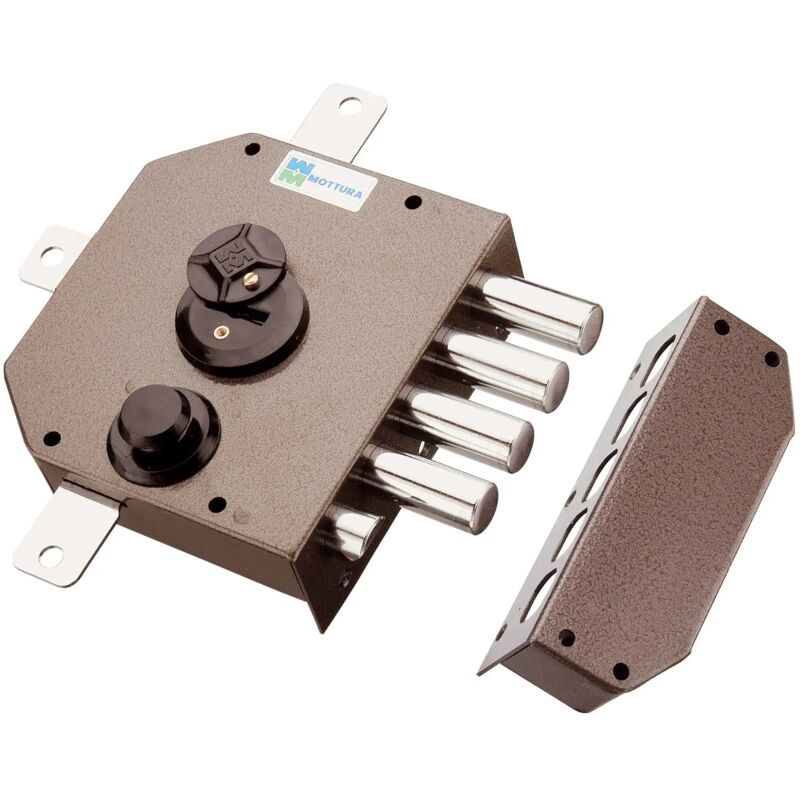 Modello quintuplice da applicare con scrocco, 4 mandate, finitura verniciata corsa chiavistelli 40 mm., corsa aste 17 mm., aste non in dotazione