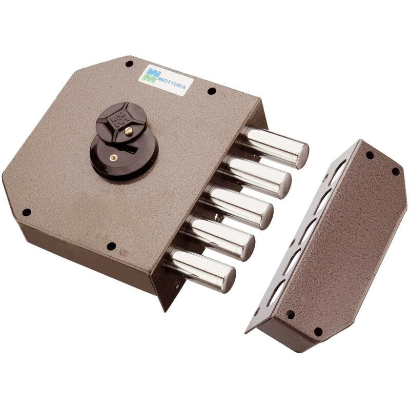 Serratura laterale da applicare, 4 mandate, senza scrocco, finitura verniciata, corsa chiavistelli 40 mm.
