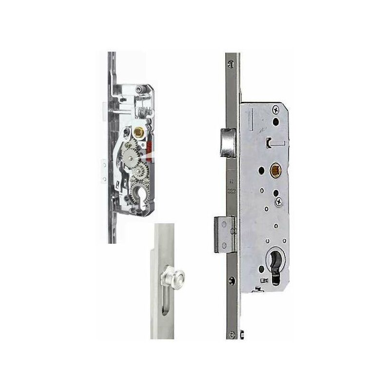 Serratura Infilare Interasse Mm 85 Frontale Mm 16X2400 Riducibile Mm 270+500 4 Nottolini Di Chiusura Scrocco Reversibile Quadro Mm 8 Trasmissione Adingranaggi Foro Cilindro Altezza Scatola 180