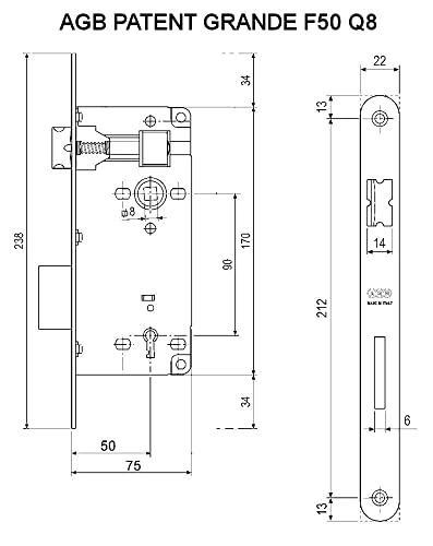 Serratura AGB Patent Grande Foro mm 50 Quadro mm 8 (CROMATO)