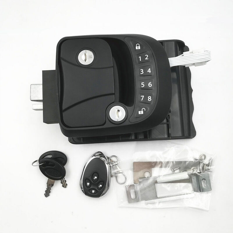 Plastica Distanza telecomando: ≤20m Alimentazione: 4 batterie AA (non incluse) Dimensioni articolo: 228 * 155 * 108 mm/ 9,0 * 6,1 * 4,3 pollici Dimensioni confezione: 240 * 170 * 150 mm/9,4 * 6,7 * 5,9 pollici Peso confezione: 911 g/ 32,1 once Lista di imballaggio: 1 * Serratura 1 * Telecomando 2 * Chiave meccanica 6 * Vite