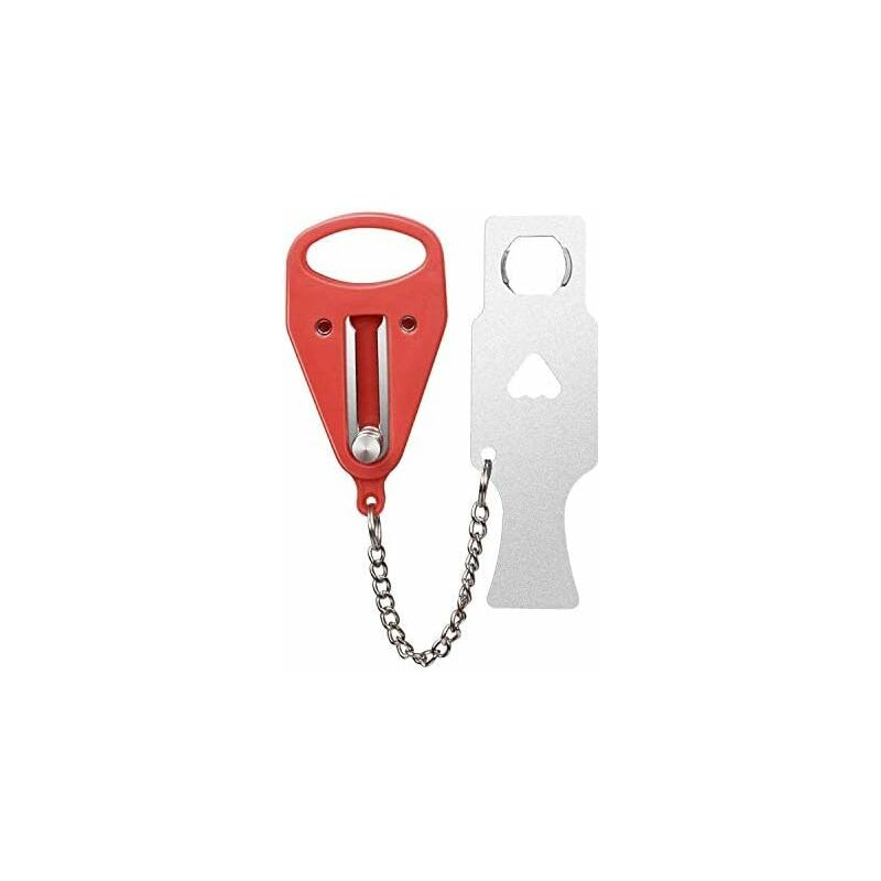 BLOCCO IDEALE per una protezione extra - La serratura portatile aggiunge ulteriore sicurezza alla tua stanza e impedisce l'ingresso non autorizzato, specialmente quando viaggi o soggiorni in un hotel. È piccolo ma manterrà la tua porta ben chiusa. Tieni lontani gli intrusi con il kit lucchetto da viaggio premium. Aggiungi un lucchetto extra per fornire un ulteriore livello di sicurezza e tranquillità. 【PERFETTO PER I VIAGGI】 Abbastanza piccolo da poter essere portato in tasca o in borsa, è un dispositivo molto utile da avere quando non sei a casa. Lascia intatta la tua dignità. Aggiungi una serratura portatile per fornire sicurezza e protezione efficaci per Airbnb, hotel, appartamenti, dormitori, bagni e camere da letto. 【FACILE DA USARE E DESIGN PIÙ SICURO】Non c'è bisogno di inchiodare o avvitare nulla, basta metti la medaglia nel foro della porta, poi chiudi la porta, prendi la maniglia rossa e inseriscila nella porta.chiudere uno potrebbe entrare e in caso di emergenza potresti