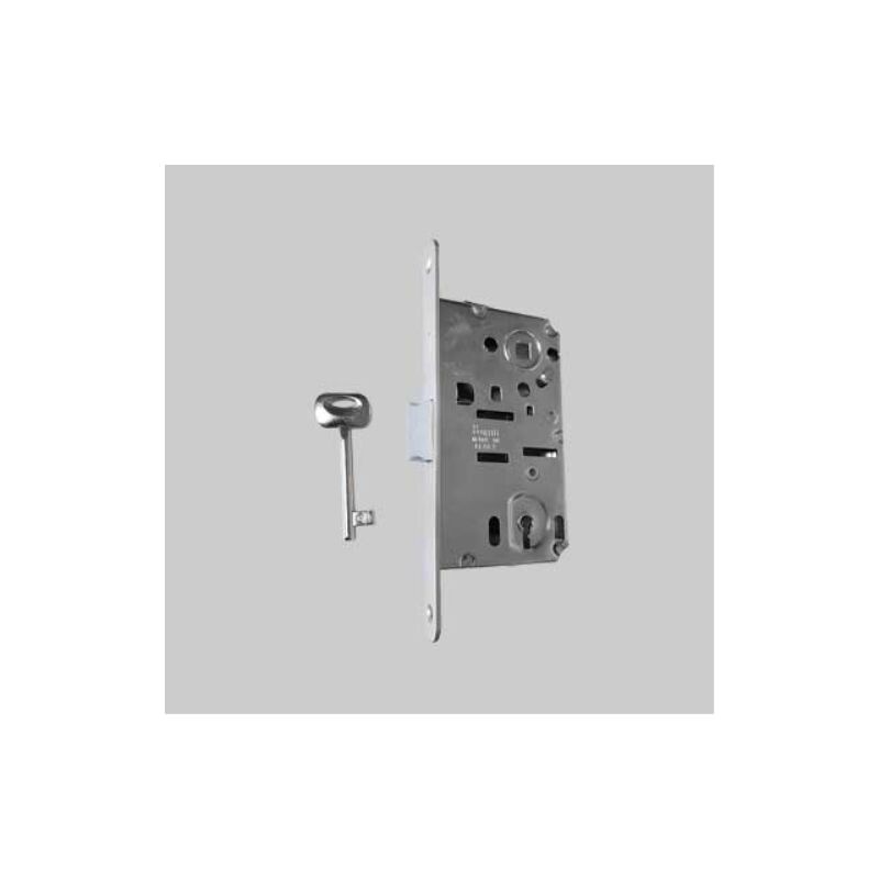 Frontale bordo tondo. Scrocco in nylon reversibile, quadro maniglia mm.8. Interasse mm.90. Senza contropiastra. Serratura per porte in legno 'patent b-bitter' bonaiti e50 ottonata lucida verniciata BONAITI Serrature per porte in legno