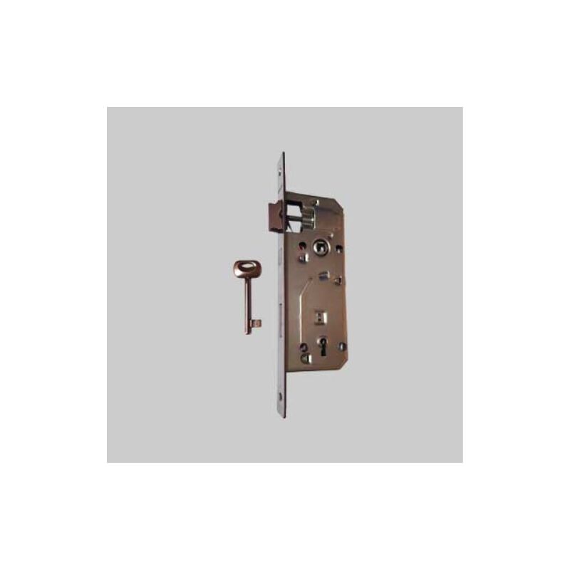 Frontale bordo quadro. Scrocco reversibile, catenaccio 2 mandate, quadro maniglia mm.8. Interasse mm.90. Senza contropiastra. Serratura per porte in legno 'patent grande' frontale bordo quadro bonaiti e45 bronzata BONAITI Serrature per porte in legno