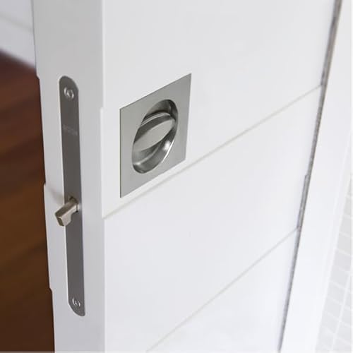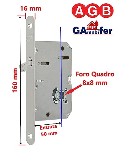 Serratura per Porte Scorrevoli Bagno WC, AGB SCIVOLA TRE, Serratura da infilare nelle porte interne scorrevoli, Modello con 1 solo Foro Quadro Maniglia. Fronte Tondo 16 x 160 mm. (OTTONATO LUCIDO)