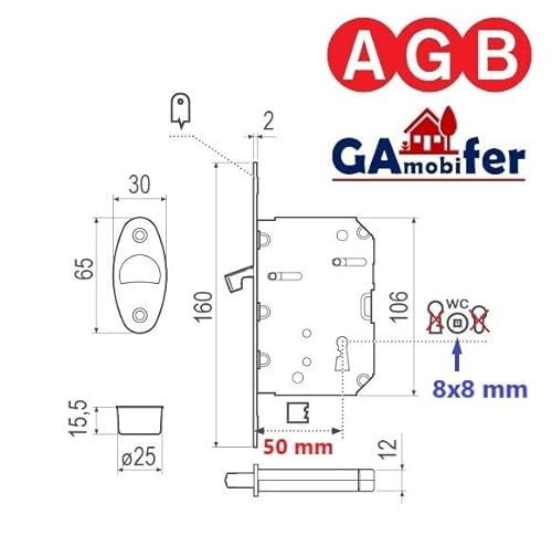 Serratura AGB SCIVOLA TRE per porte scorrevoli interne Bagno WC.