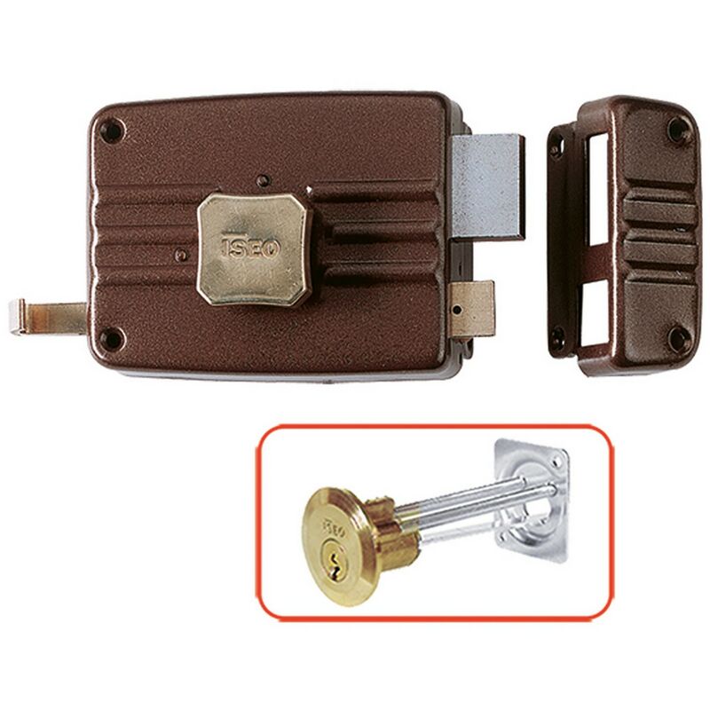 Con pomolo interno e cilindro staccato esterno, scrocco separato. dotazione 3 chiavi.2 mandate dx - e 50