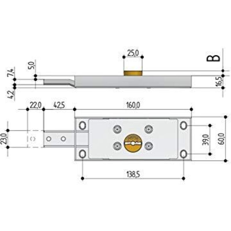 Per serrande, 2 mandate con cilindro doppia mappa fisso, catenaccio piegato