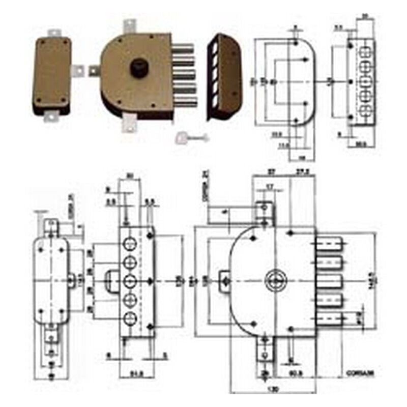 4 mandate, scatola in acciaio verniciato, catenacci a pistoni con interasse mm.28 in acciaio cromato, cilindro a pompa lato esterno e lato interno, dotazione: 1 mostrina cromata, 1 ferrogliera, 1 deviatore, viti e minuteria, 3 chiavi a pompa, aste non c