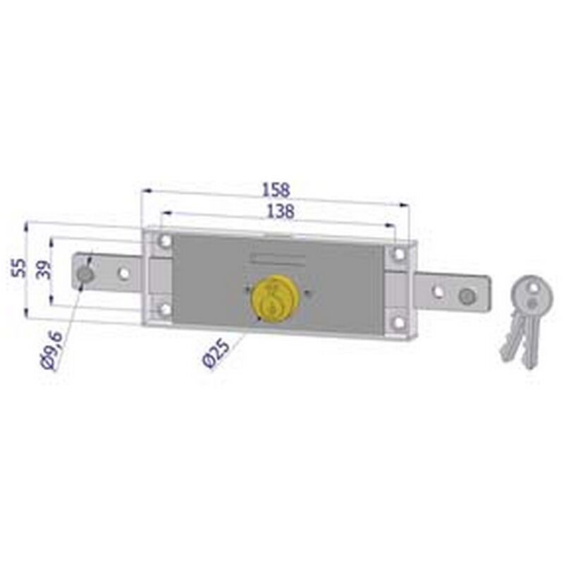 Per serranda, scatola acciaio zincato, cilindro in ottone, dotazione 2 chiavi