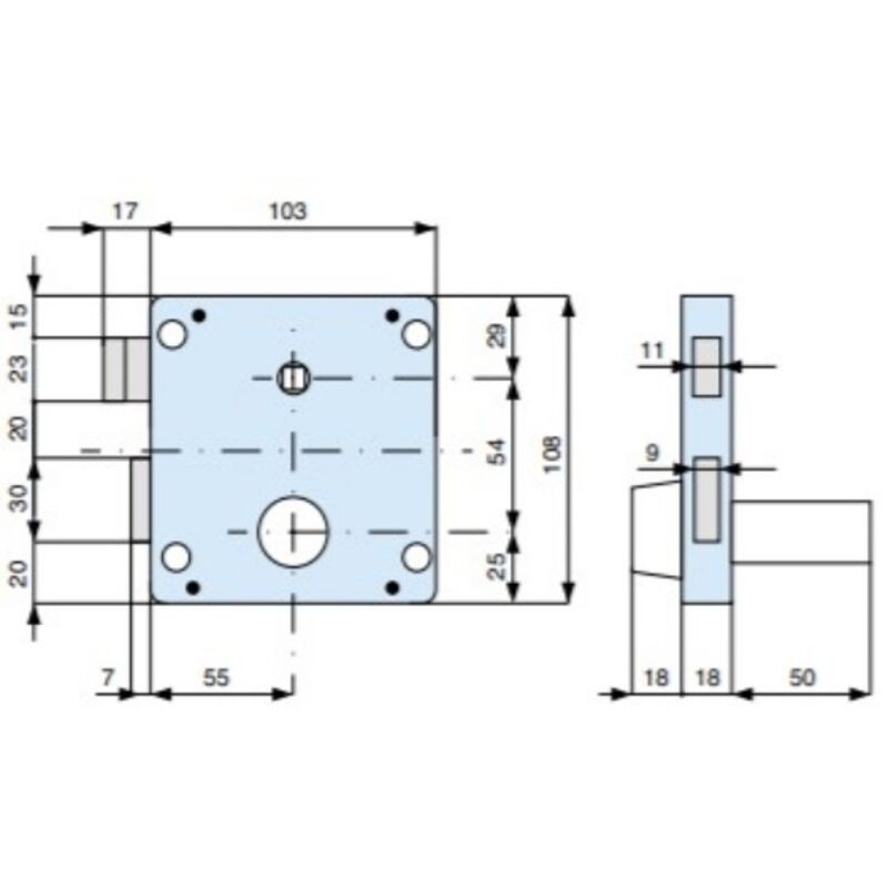 Serrature Mg per portoncino 436 da applicare, acciaio zincato, scrocco e catenaccio, due mandate, cilindro fisso lungo.