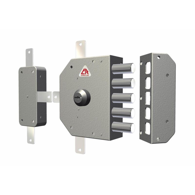 Serratura di sicurezza CR, con cilindro a pompa. Art. 3300. Chiusura quintupla con 5 catenacci. Comando interno con chiave. Entrata 60 mm;