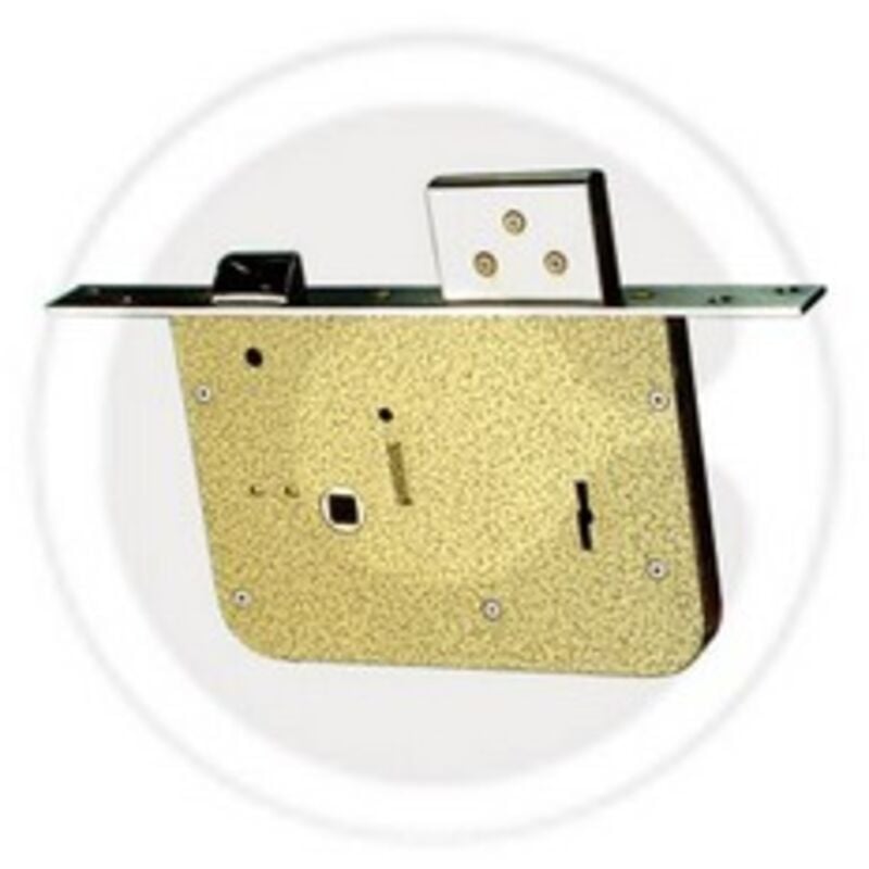 Art. 5000 chiusura laterale con scrocco e catenaccio a quattro mandate. Entrata mm. 60. Frontale mm. 262 x 22 x 3. Scatola mm. 172 x 112 x 17 Art. 5000 chiusura laterale con scrocco e catenaccio a quattro mandate. Entrata mm. 60. Frontale mm. 262 x 22 x 3. Scatola mm. 172 x 112 x 17