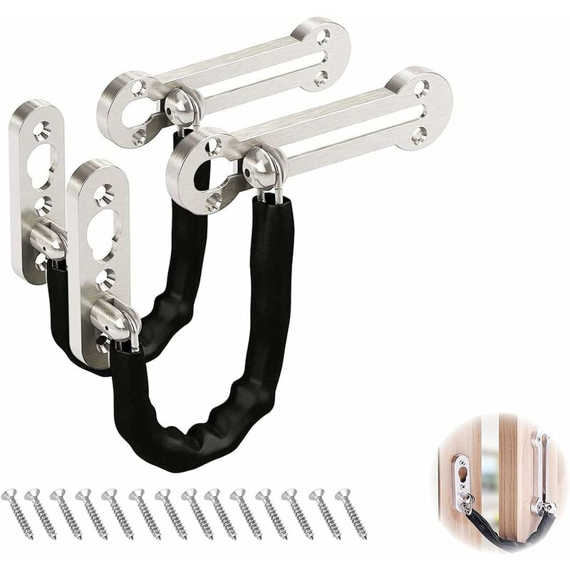 mentre la catena spessa e solida, che include anche un fodero in pelle, fornisce una doppia protezione e la trazione può prevenire il che porta alla rottura. 【Design di aggiornamento e ispessimento】Una base spessa in acciaio inossidabile e una catena audace combinati con un'installazione perforata più forte ti dà un completo senso di sicurezza. È molto adatto per donne single e anziani. 【Migliora la sicurezza】 La catena della porta con serratura protegge efficacemente la sicurezza o la privacy della tua famiglia. Protezione dal furto e impedisci al bambino di aprire la porta senza permesso o che gli animali domestici scappino da casa tua. 【Facile da installare】 Una catena della porta