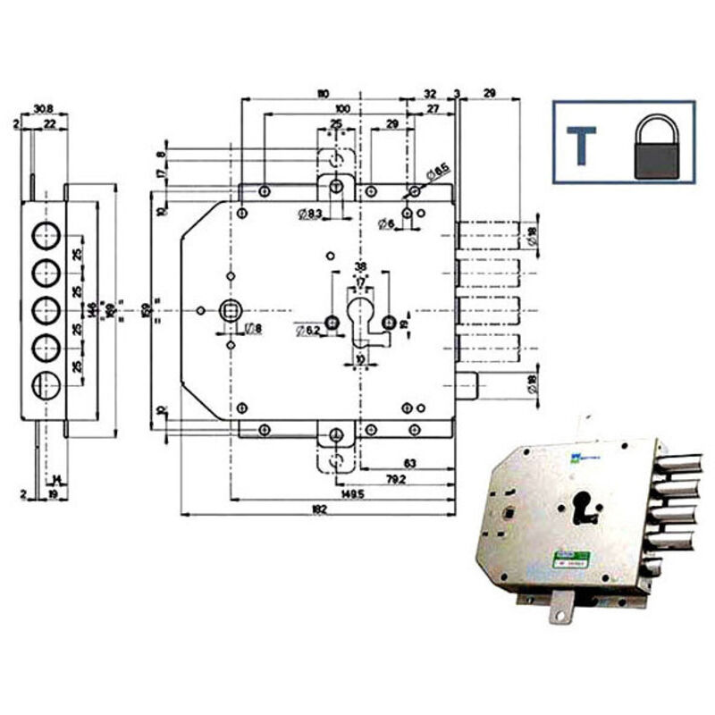Mottura Serratura Sicurezza Triplice Sx Ya Scrocco 85555