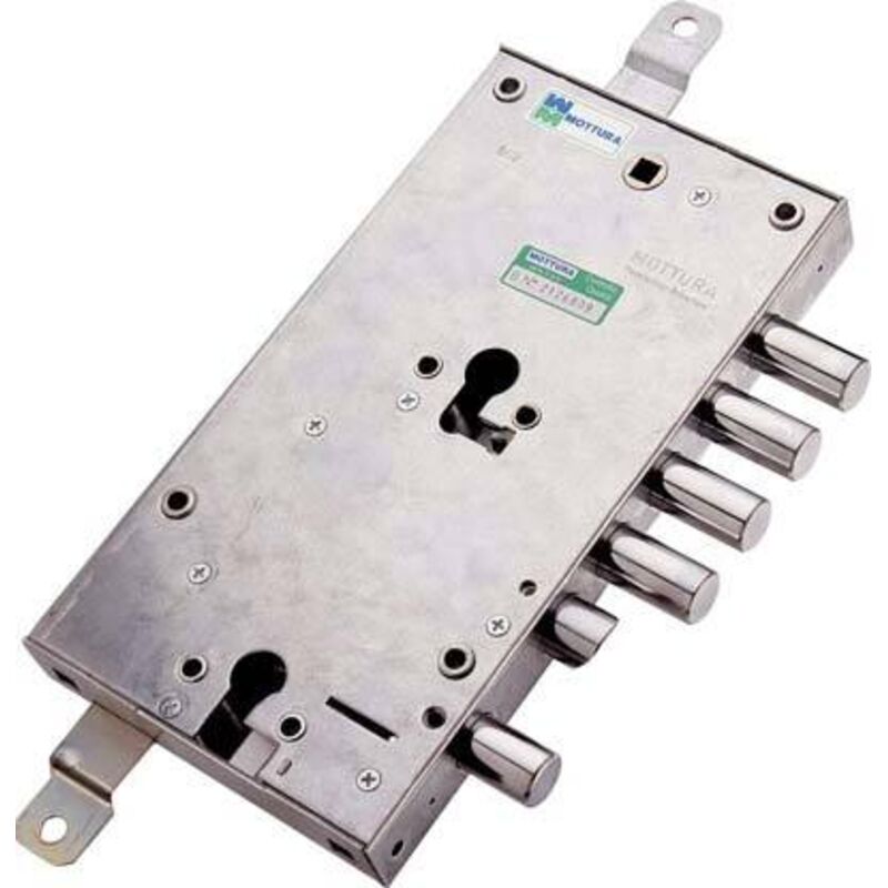 Scatola mm.136x254h. in acciaio con rivestimento in zinco, catenacci e scrocco in acciaio nichelato, 2 mandate, quadro maniglia passante, cilindro europeo ed cilindro e aste non compresi
