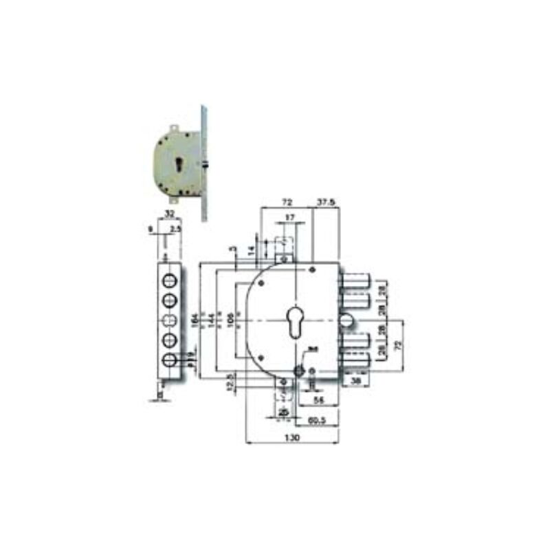 Mm.60 sx (2151pen-11) scatola in acciaio zincato, fissaggio cilindro con sistema simply, catenacci e scrocco a pistoni con interasse mm.28 in acciaio cromato, 4 mandate, quadro maniglia, funzionante con cilindro a profilo europeo non compreso, dotazione: 2 mostrine dorate, viti e minuteria, aste non comprese Categoria merceologica: Serrature, chiusure di sicurezza e accessori - Sicurezza - Serrature per porte blindate