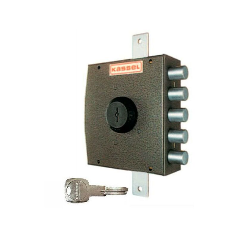 Serratura pompa chiave punzonata applicare legno 2 chiusure verticali - Pomolo interno Catenacci laterali 5 pistoni Sporgenza cilindro mm 60 diametro mm 34 Scatola mm 140x154x33 - Entrata mm 60 3 chiavi 0048F cod.84462 Coppia spostamenti 0604 Aste non incluse