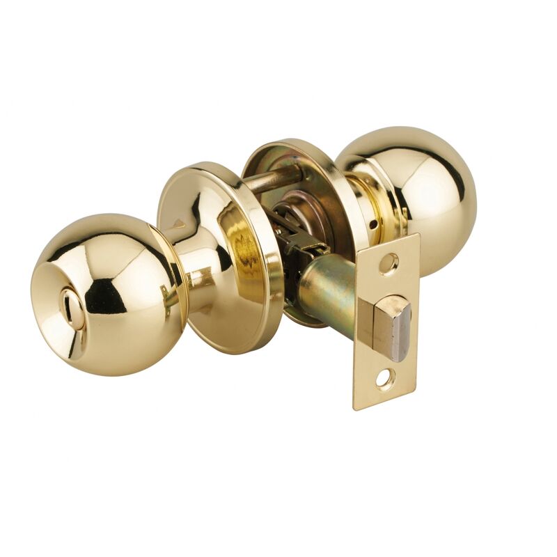 Pomello esterno in acciaio stampato. Pomello interno in acciaio stampato con pulsante di bloccaggio. Chiusura a chiavistello reversibile da 1/2 giro con piastra rettangolare. Piastra di riscontro piatta. Perno regolabile 60/70mm. Dispositivo di emergenza che permette di sbloccare la serratura con un chiodo.