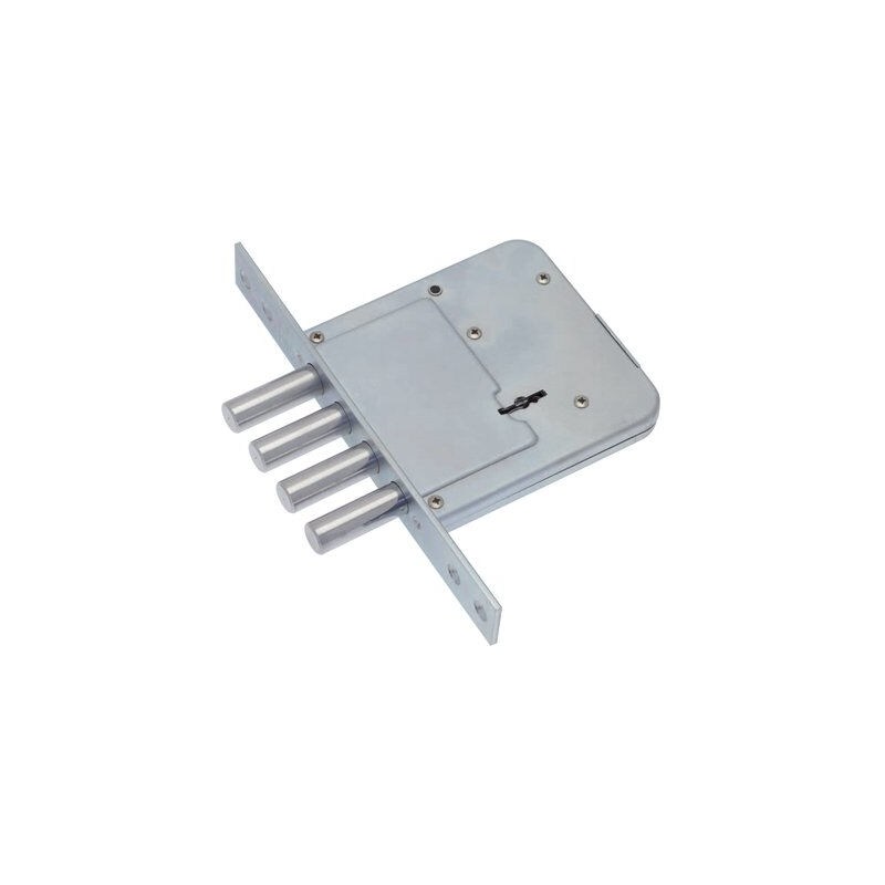 A doppia mappa. Chiusura con 4 catenacci a pioli a 4 mandate. Frontale in acciaio zincato con bordo quadro da Mm. 25x193. Altezza scatola Mm. 110. In dotazione: 3 chiavi, 2 bocchette copritoppa in ottone, 1 contropiastra in acciaio zincato e viti di montaggio.