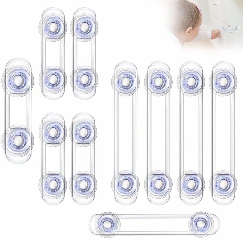 Chiusure di sicurezza da 10 pezzi: Serratura di sicurezza da 10 pezzi per cassetti, può proteggere diverse superfici contemporaneamente. 2 diverse misure, 5 pezzi lunghi, 5 pezzi corti. Alta qualità: gli armadietti di sicurezza sono realizzati con materiali ABS sani ed ecologici, atossici e inodori che consentono a tuo figlio di vivere in modo più sano e più sicuro. Nuovo design: nuovo design della fibbia, entrambe le estremità possono essere aperte, facile da aprire per gli adulti, ma difficile per i bambini che possono proteggere efficacemente la sicurezza. Usi multipli: adatto per la maggior parte dei mobili e degli elettrodomestici, come frigorifero, forno a microonde, lavatrice, armadi, cassetti, finestre, servizi igienici, armadi, sgabelli chiusi e così via. Facile da installare e rimuovere: Il fissaggio è assicurato grazie al nastro adesivo 3M di alta qualità che permette di mantenere in posizione lo scrocco senza dover praticare fori. Non causerà alcun danno ai tuoi mobili