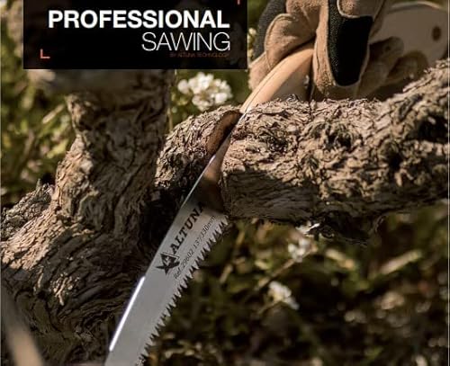 Serrucho modelo curvo con mango de madera. Hoja dentado japonés tratado con funda de madera. Longitud 330/13".