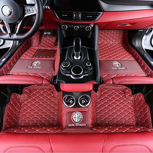 SERTUV Auto Tappetini Abitacolo Pelle Personalizzato, per Alfa Romeo Giulia 2017-2022 2023 Car Moquette Copertura Completa Interni Protezion Floor Mats Liners Accessori,Redstyle