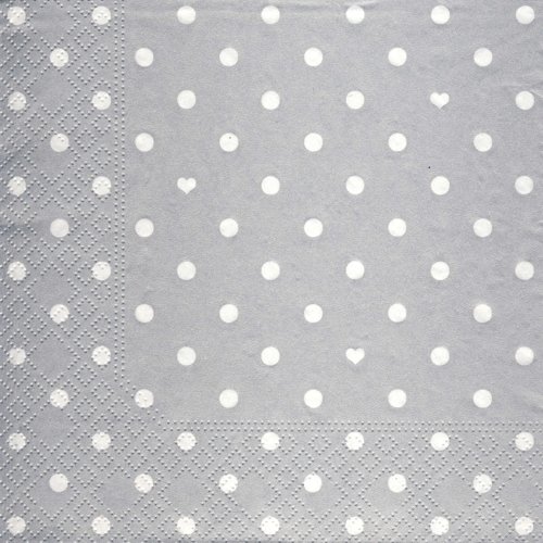 Servietten Muster 20 tovaglioli con Cuori e Pois, Argento, 33 x 33 cm
