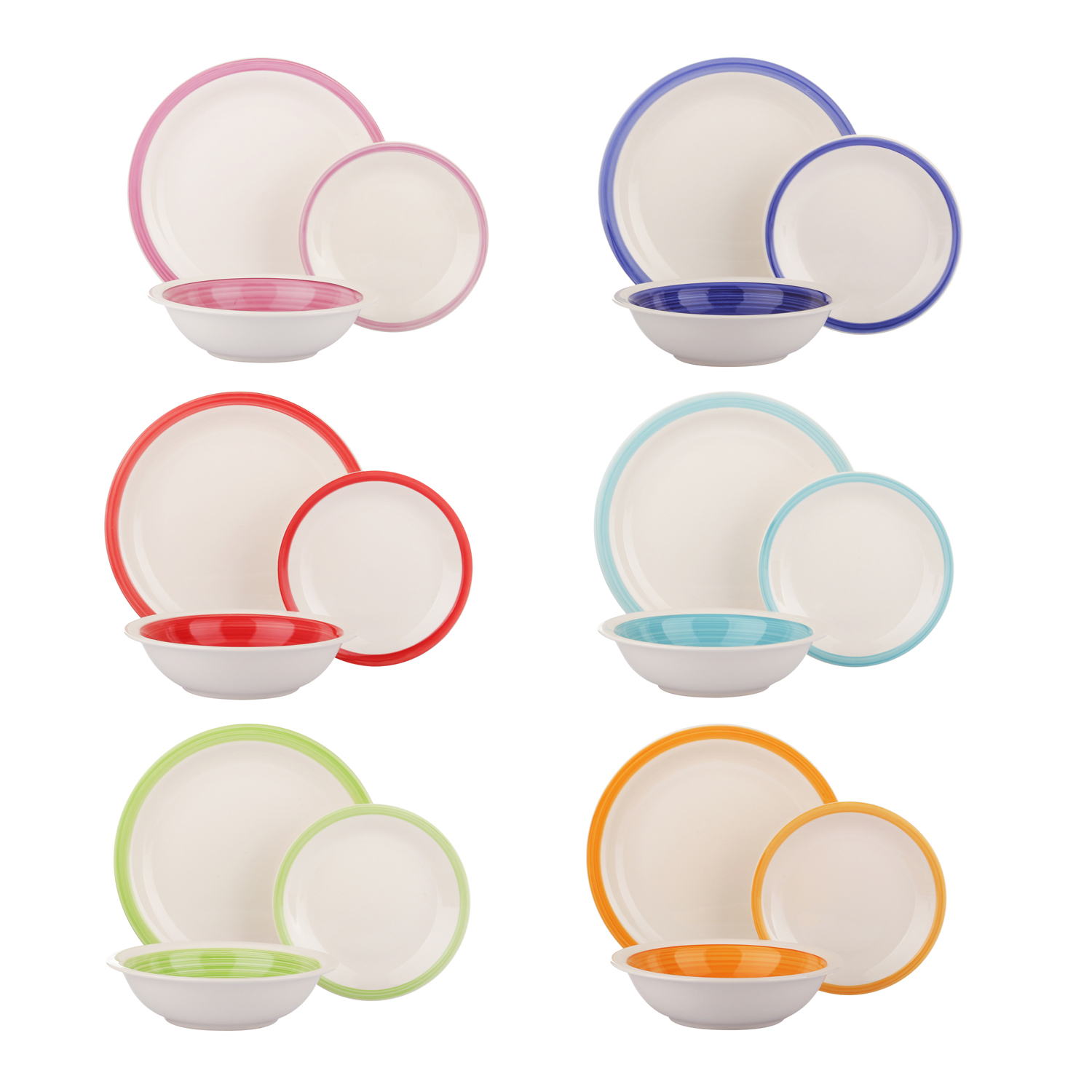 Rendi unica la tua mise en place con questo servizio di piatti in ceramica super white che mette in risalto linee e colori. Ogni piatto, infatti, è studiato per essere unico e originale, perfetto per personalizzare ogni posto a tavola con incredibili combinazioni. Utilizzabili anche in forno a microonde, i piatti sono comodamente lavabili in lavastoviglie senza timore che perdano lucentezza. Il servizio, pensato per 6 persone, include: 6 piatti piani da 26,5 cm, 6 piatti fondi da 21,5 cm, 6 piatti da dessert da 19 cm.