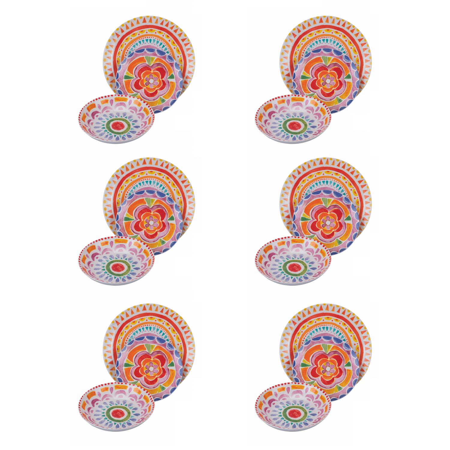 Porta sulla tua tavola un'esplosione di arte e colori con il vivace servizio piatti Playa Del Sol in porcellana! Pensato per apparecchiare la tavola dal primo alla frutta per 6 persone, è caratterizzato da sgargianti motivi floreali con colori univoci ad ogni posto tavola. I tuoi pranzi e cene in famiglia o con amici saranno super variopinti e personalizzati per ogni ospite. Il servizio è utilizzabile anche per scaldare le pietanze nel forno a microonde e lavabile in lavastoviglie. In dettaglio è composto da 6 piatti fondi diametro 20 cm, 6 piatti piani diametro 27 cm, 6 piattini frutta o per dessert diametro 19 cm.