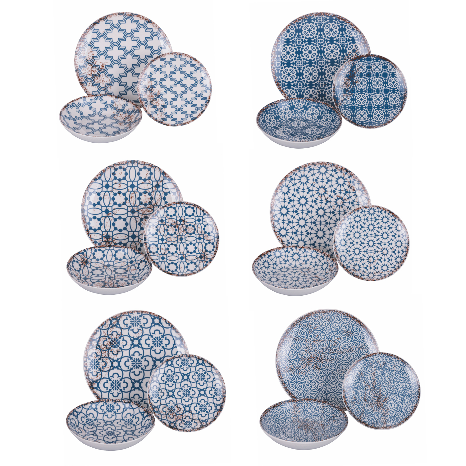 Esalta la tua tavola con il servizio piatti 18 pezzi Kasbah blu! Realizzato in pregiata porcellana, offre 6 posti tavola con 6 incantevoli decori distinti. Ogni set include 6 piatti piani, 6 piatti fondi e 6 piatti frutta, arricchiti da dettagli decorativi unici. Con dimensioni e pesi ottimali per un'esperienza culinaria impeccabile. Adatto per microonde e lavastoviglie, unisce funzionalità e stile senza compromessi.