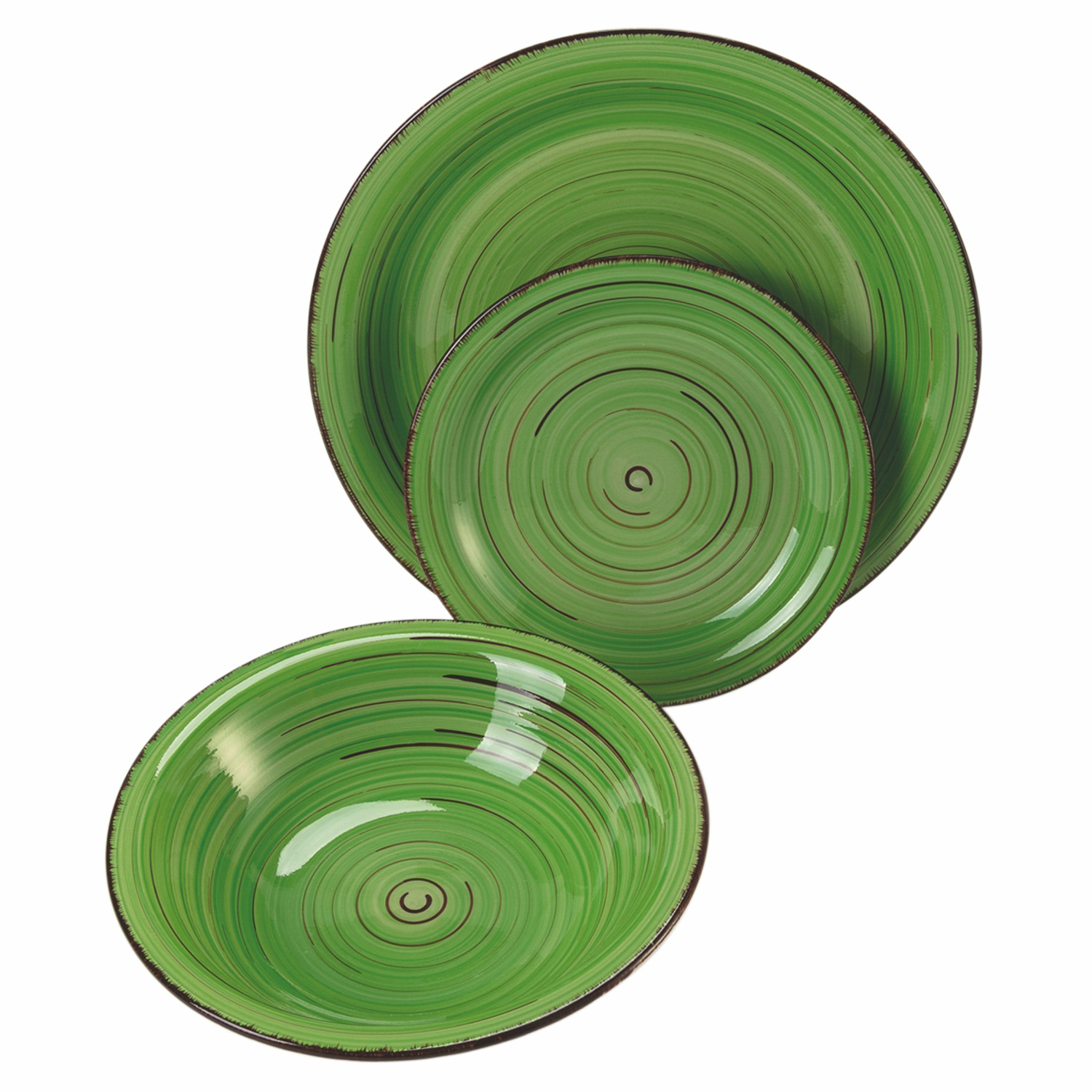 Porta la gioia del sole italiano sulla tua tavola con il servizio piatti 3 pezzi Lipari verde. Realizzato con cura artigianale in stoneware, ogni pezzo è dipinto a mano, rendendo ogni set unico. Il servizio include un piatto piano spazioso (d. 27 x h. 2,5 cm), un piatto fondo profondo (d. 21,5 x h. 5,5 cm) e un piatto frutta affascinante (d. 19,5 x h. 2,3 cm). Questi pezzi, oltre ad essere lavabili in lavastoviglie per comodità, sono anche utilizzabili in microonde, garantendo praticità e versatilità. Aggiungi un tocco di calore e stile alla tua tavola con il servizio piatti Lipari verde.