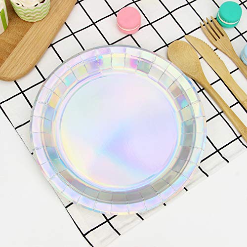 Set Servizio da Tavola Confezione da 100 Piatti Argento di Carta Lucida Usa e Getta, Rotondi 9 Polici, Feste Aperitivo, Pranzo, Cena o Dessert
