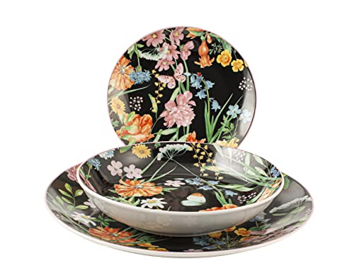 Caroline Black, un servizio tavola dal motivo floreale romantico, fresco e moderno. E' perfetto per trasformare la tua mise en place primaverile in un profumatissimo campo fiorito