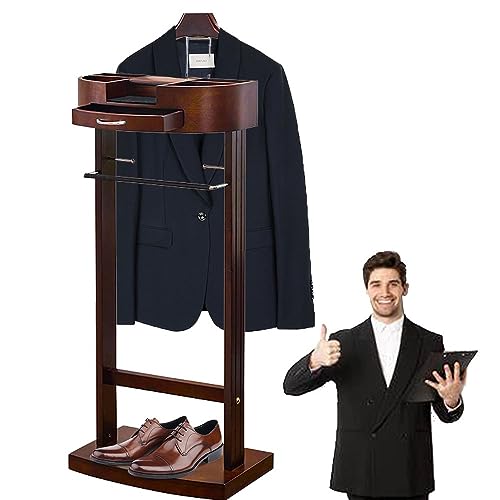 Servo Muto Moderno e Multifunzionale Omino Appendiabiti Legno Massiccio Appendiabiti Indossatore per Camera da Letto e Spogliatoio con Cassetto