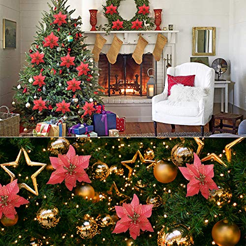 SERWOO 24 x 15 cm, fiori artificiali, argento e oro, in tela, non tessuto, albero di Natale, albero di Natale, albero di nozze, giardino, rosso - 15 cm