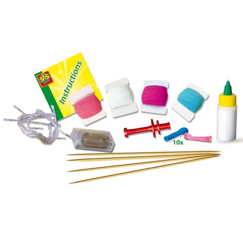 Ghirlanda di lampadine con 8 luci a led, palloncini, pompa a bocca, filo di nylon, colla e bastoncini di legno