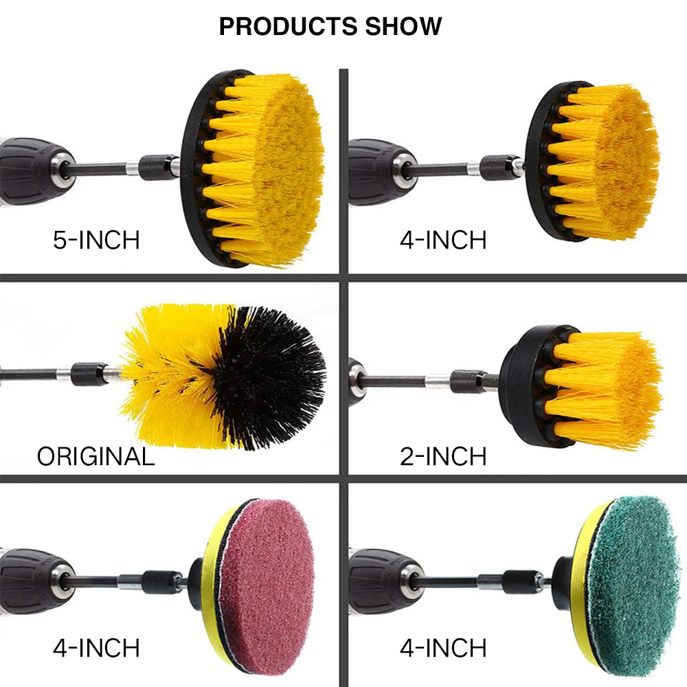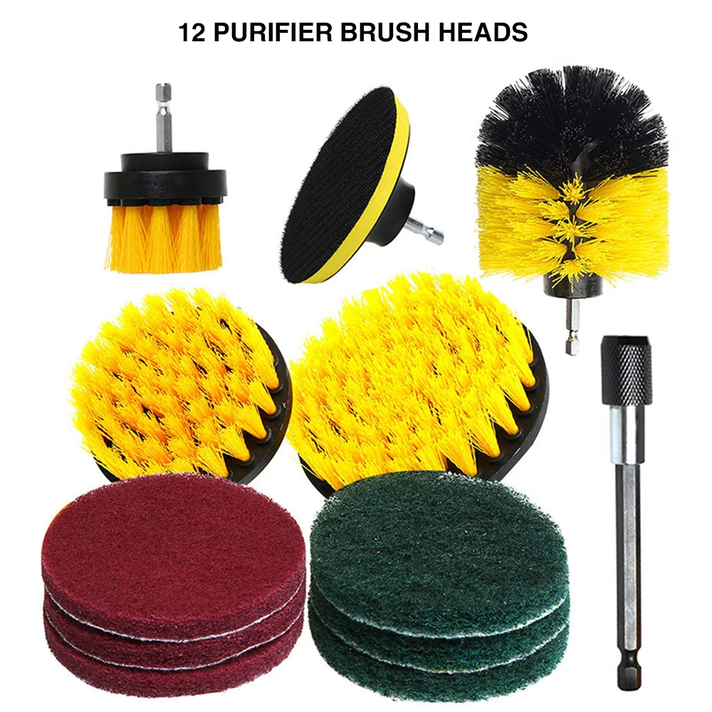 1 Set/12 PCS Electric Drill Brush Kit Plastic Round Cleaning Brush For Carpet Glass Car Tires Nylon Brushes Scrubber Drill 2021