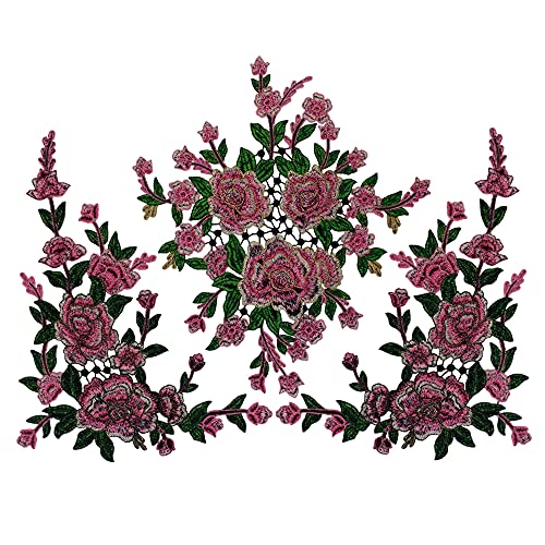 1 set/3 pezzi 3D ricamati in tessuto con motivo floreale in pizzo per applicazioni fai da te fai da te Bordado forniture per cucire (rosa)