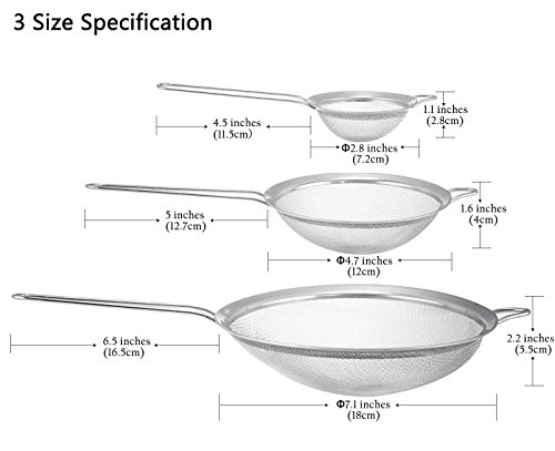 Setaccio da cucina, Rixow colino set, Bicicletta Acciaio Inox Colino, 3 Dimensione Set, 6/11/19 cm