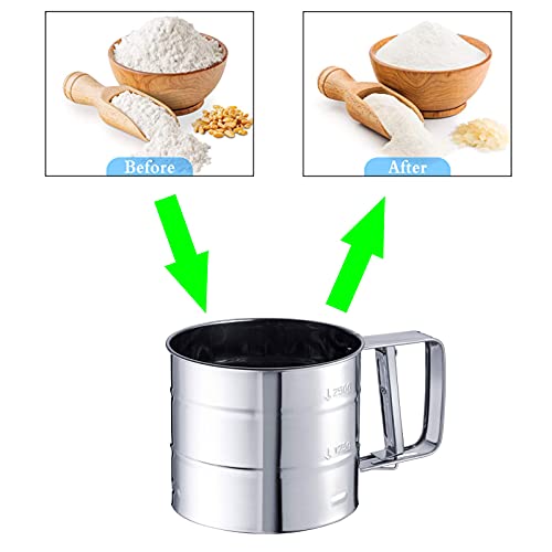 Setaccio Farina con Tazza Setaccio a Una Mano In Acciaio Inox Setaccio per Farina Grande Setaccio per Farina di Maglia Setaccio da Cucina Setacci per Farina Per Zucchero a Velo Caffè in Polvere 1 Pz