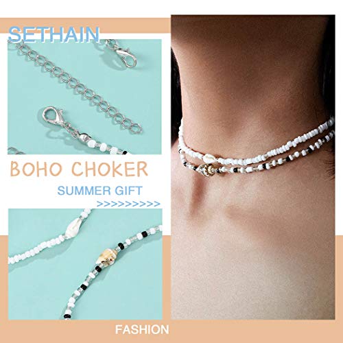 Sethain Collana girocollo Boho Catena Conch Bianca Perlina corta Collane Spiaggia Gioielli per donne e ragazze