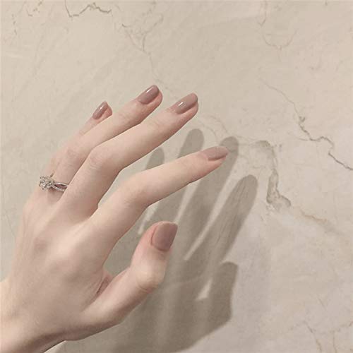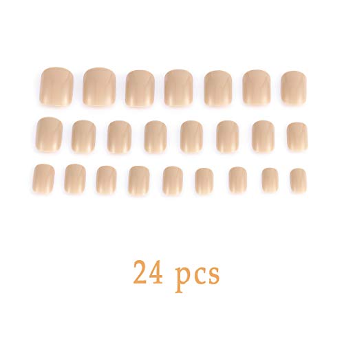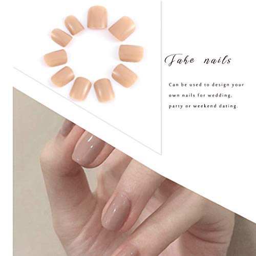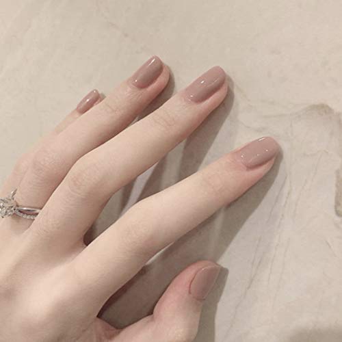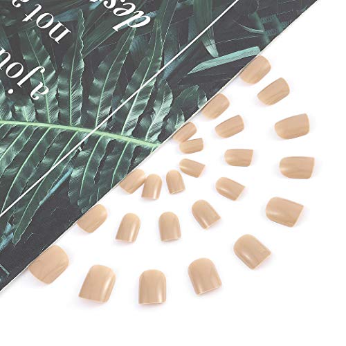 Sethain Lucido Corto Unghie finte Suggerimenti Cachi Puro Piazza Unghie finte Copertura completa 24PCS Stampa su unghie per donne e ragazze