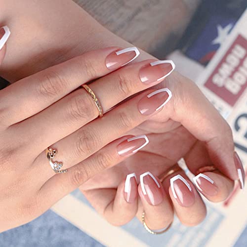 Sethexy Lungo Ballerina Falso chiodo Lucido francese Marrone Bara Unghie finte 24 Pz Acrilico Arte Premi sulle punte delle unghie per donne e ragazze