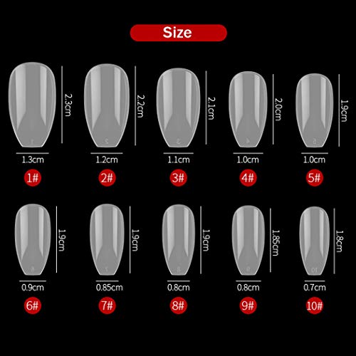 Diverse dimensioni: 500 pezzi di punte per unghie finte, offrono 10 diverse dimensioni, dimensioni adatte che si adattano a ogni dito